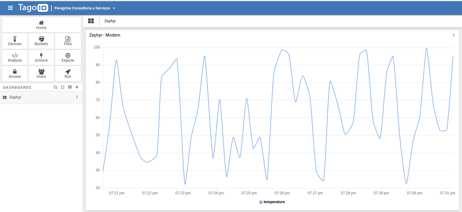This sample application implements an HTTP client that will do an HTTP post request to TagoIO [1] IoT Service Platform. The sample sends random temperature values to simulate a real device. This can be used to speed-up development and shows how to send simple JSON data to TagoIO [1] servers.